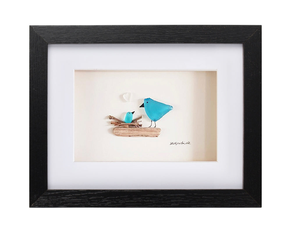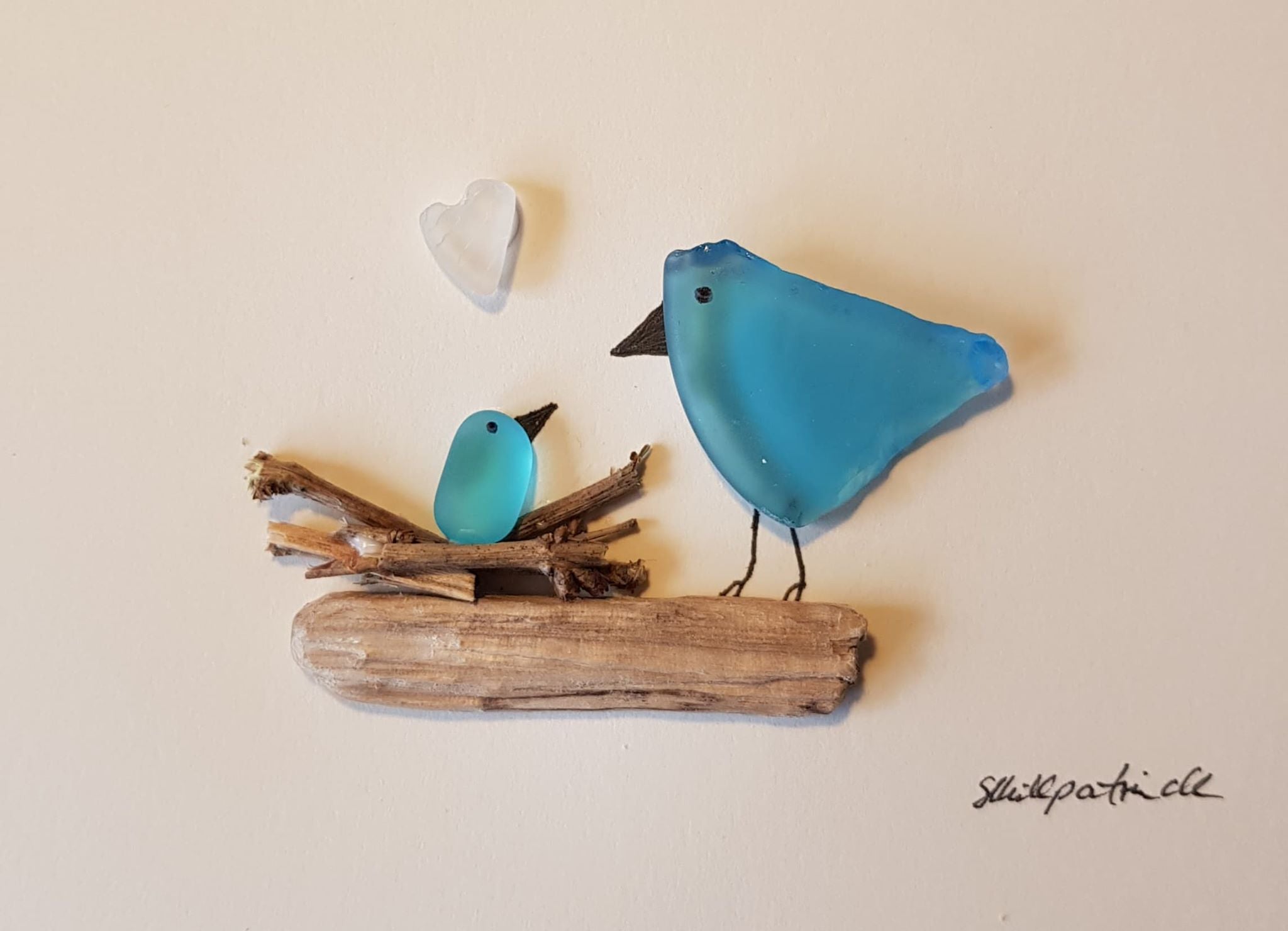 "Nesting Birds (Blue)" - a unique handmade artwork from Sophie Kirkpatrick.