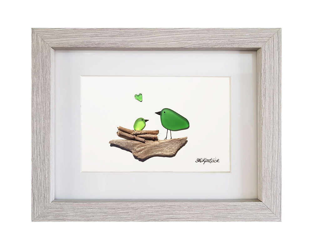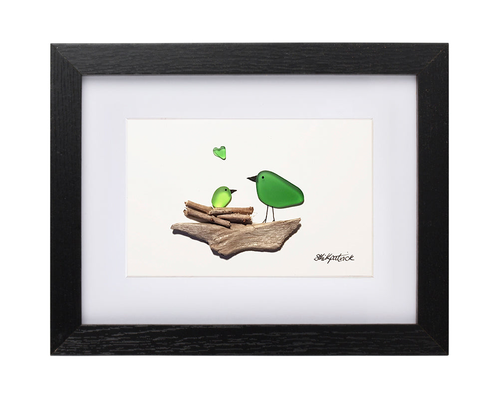 "Nesting Birds (Green)" a unique handmade artwork from Sophie Kirkpatrick.